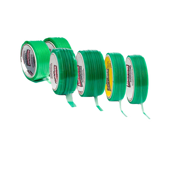 - Typ: Selbstklebende Folienbänder mit eingelegtem Faden, transparent grün